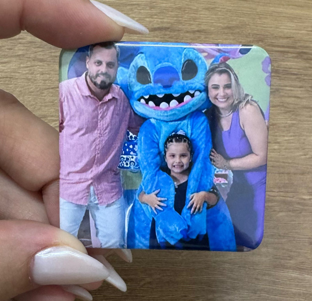 O boton quadrado personalizado com ímã magnético é ideal para eternizar fotos, datas comemorativas e eventos importantes, decorando geladeiras e superfícies metálicas com muito carinho.